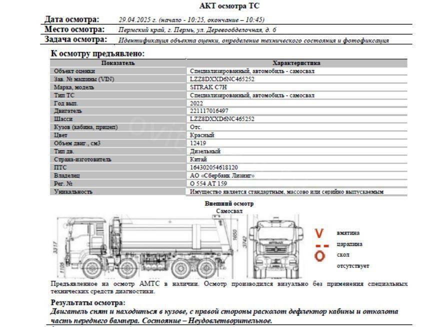 АО «Сбербанк Лизинг» Лот №3538. Специализированный, автомобиль - самосвал SITRAK C7Н, 2022 г.в.
