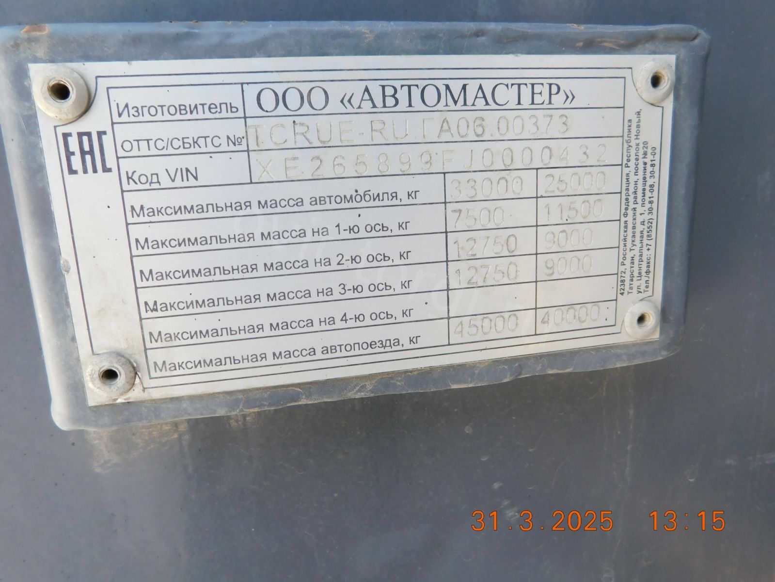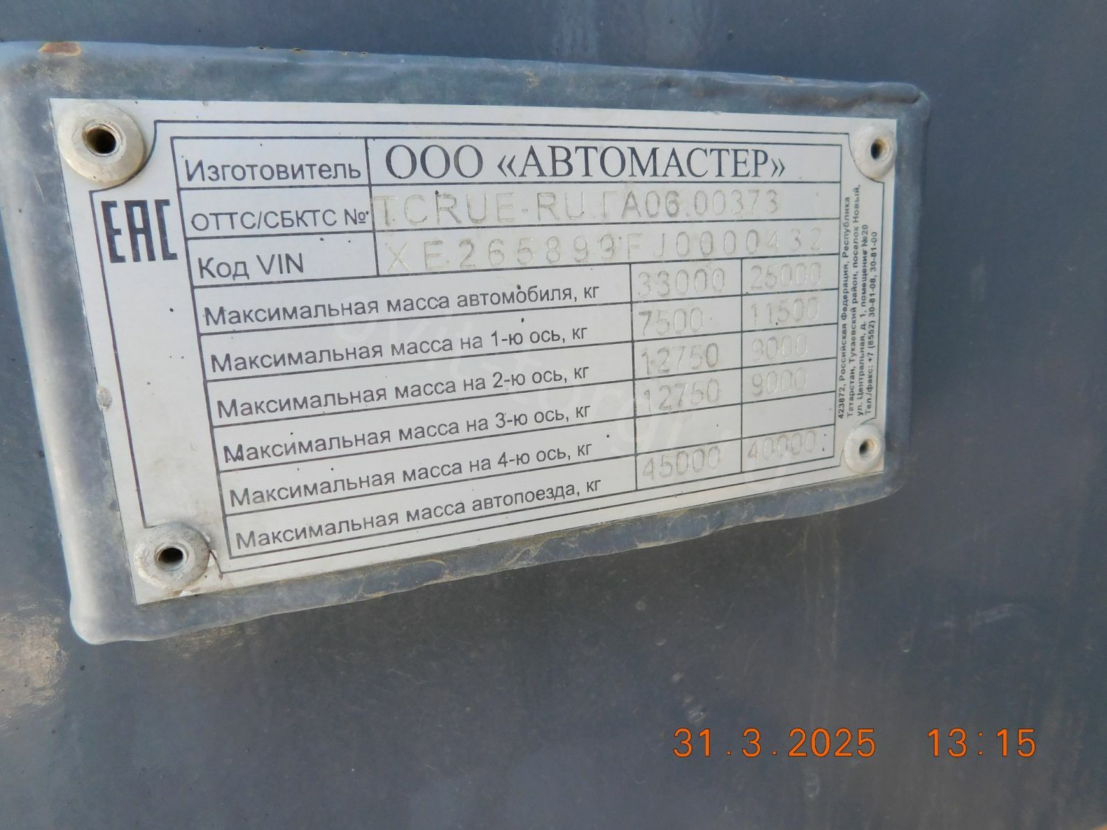 Автомобиль-самосвал VIN XE265899FJ000043...